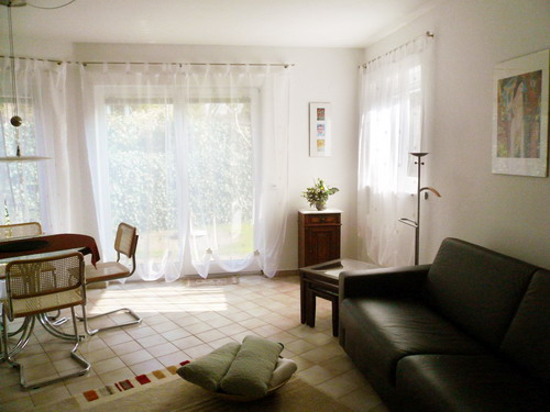 Der separate Eingang zum Apartment liegt ebenerdig. Sie ist dadurch bequem stufenlos erreichbar.